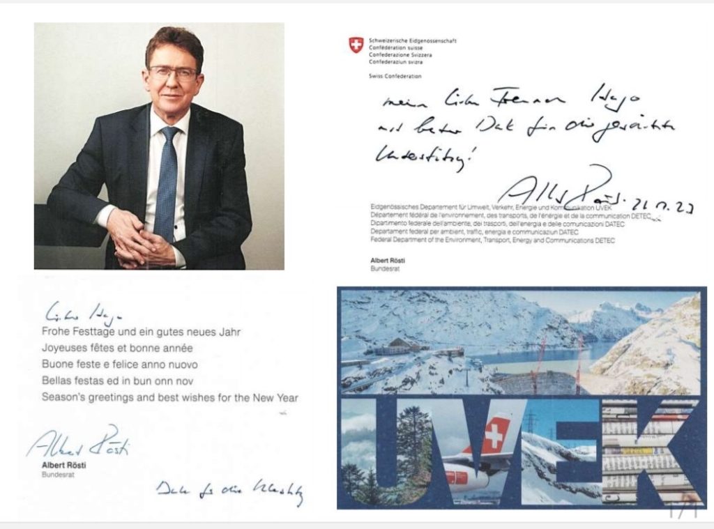 Bundesrat Dr.Albert Rösti persönlicher Brief an Hugo Jvo Rütimann