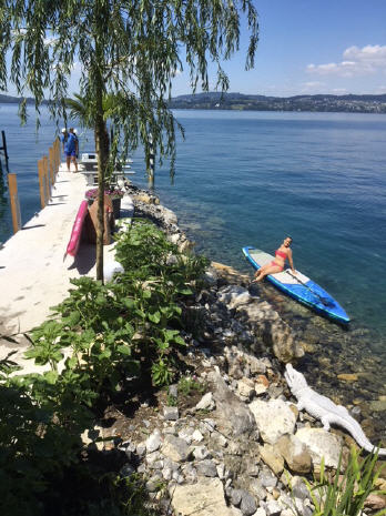 Hinter diesen Sträuchern und Holzwänden befindet sich der mehrfach Kläger ( 3 Parzellen vom See entfernt! ) ,der bewirken konnte dass die Mieter und der Besitzer am See keine Sonnenschirme mehr aufstellen dürfen ! Der verlorene Prozess kostete den Besitzer am See Fr.48‘000.- er wurde vertreten durch :Sarah Jud Anwaltskanzlei ENGELBERGER Luzern/Stansstad