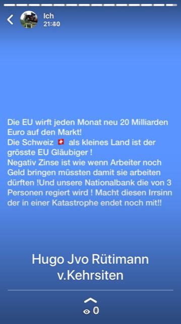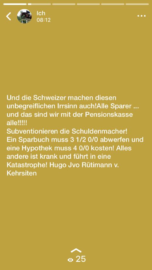 Negativzinsen führen uns in eine Katastrophe ! Leserbrief von Hugo Rütimann v.Kehrsiten